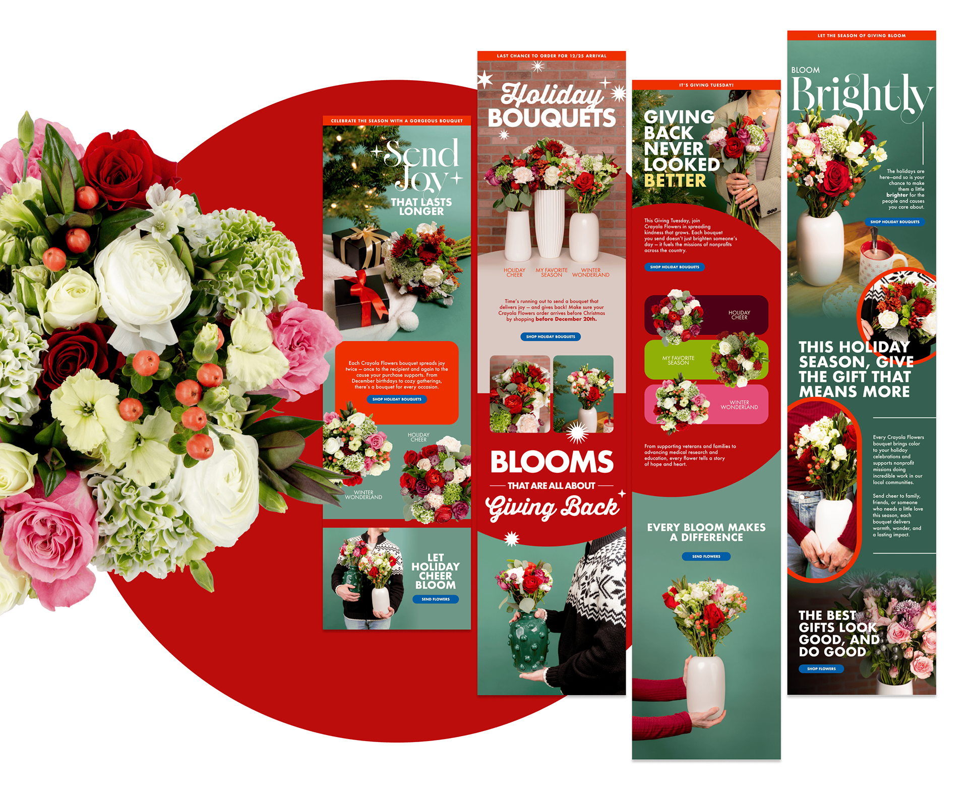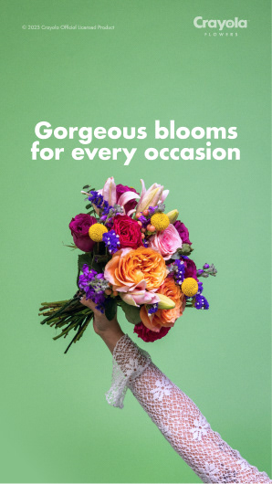Evergreen and seasonal assets for Crayola Flowers, including photography, email design, social media content, and digital ads.